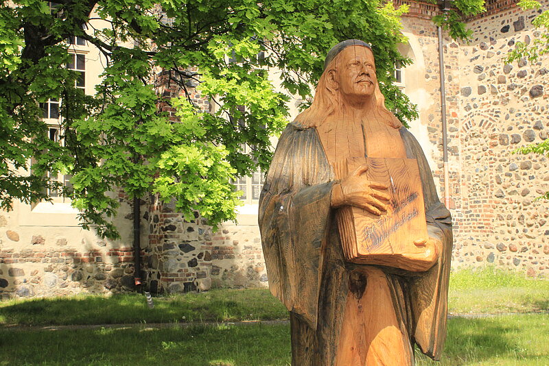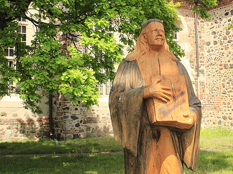 Ev. Stadtkirche St. Marie und Paul-Gerhardt-Skulptur