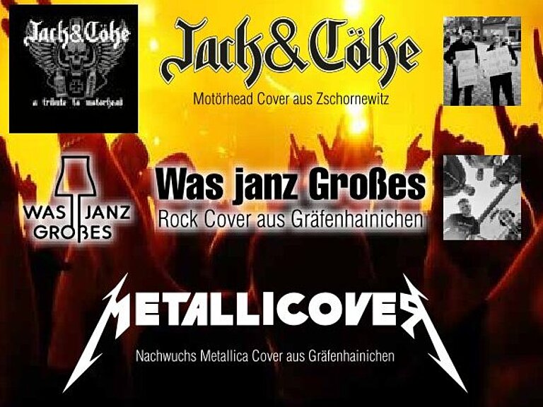 mit Jack & Cöke (Motörhead Cover aus Zschornewitz), Was janz Großes (Rock Cover aus Gräfenhainichen), Metallicover (Nachwuchs Metallica Cover aus Gräfenhainichen)